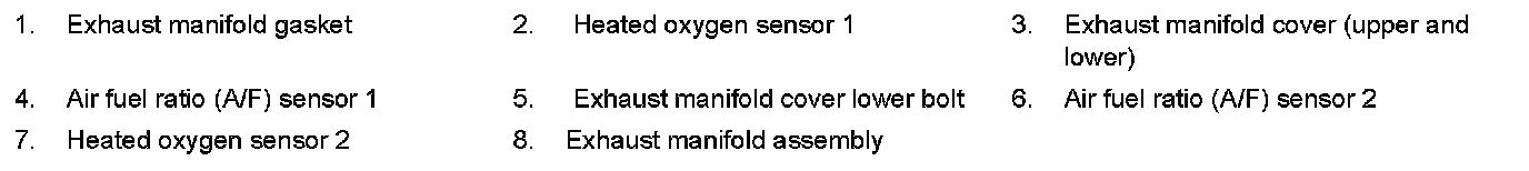 11.Loosen the nuts in reverse order as shown, on the exhaust manifold and three way catalyst.