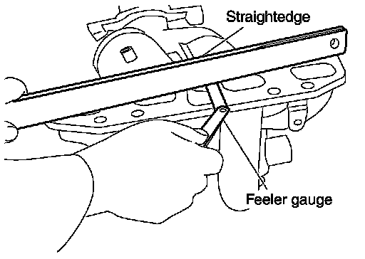 - Use a reliable straightedge and feeler gauge to check the flatness of exhaust manifold fitting surface.