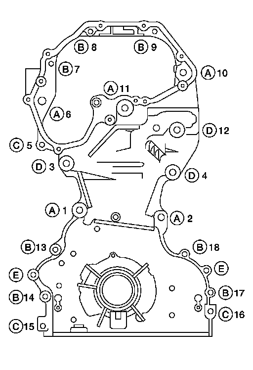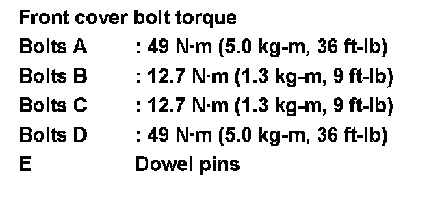 Tighten front cover bolts in the numerical order as shown.