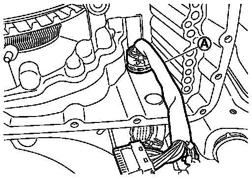 16.Remove CVT unit connector (A) from the transaxle case inside.