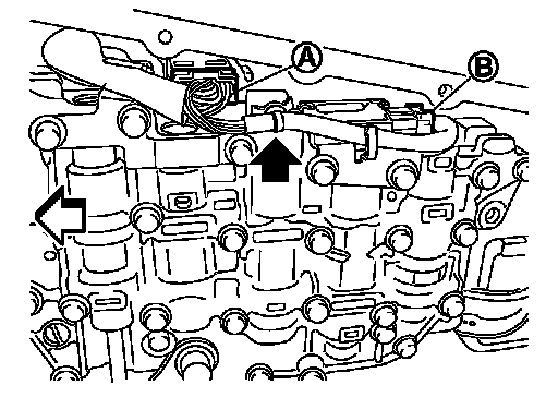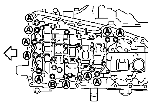 15.Remove the control valve bolts (A) and (B), and then remove the control valve from the transaxle case.