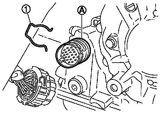 5.Remove the snap ring (1) from the CVT unit connector (A).