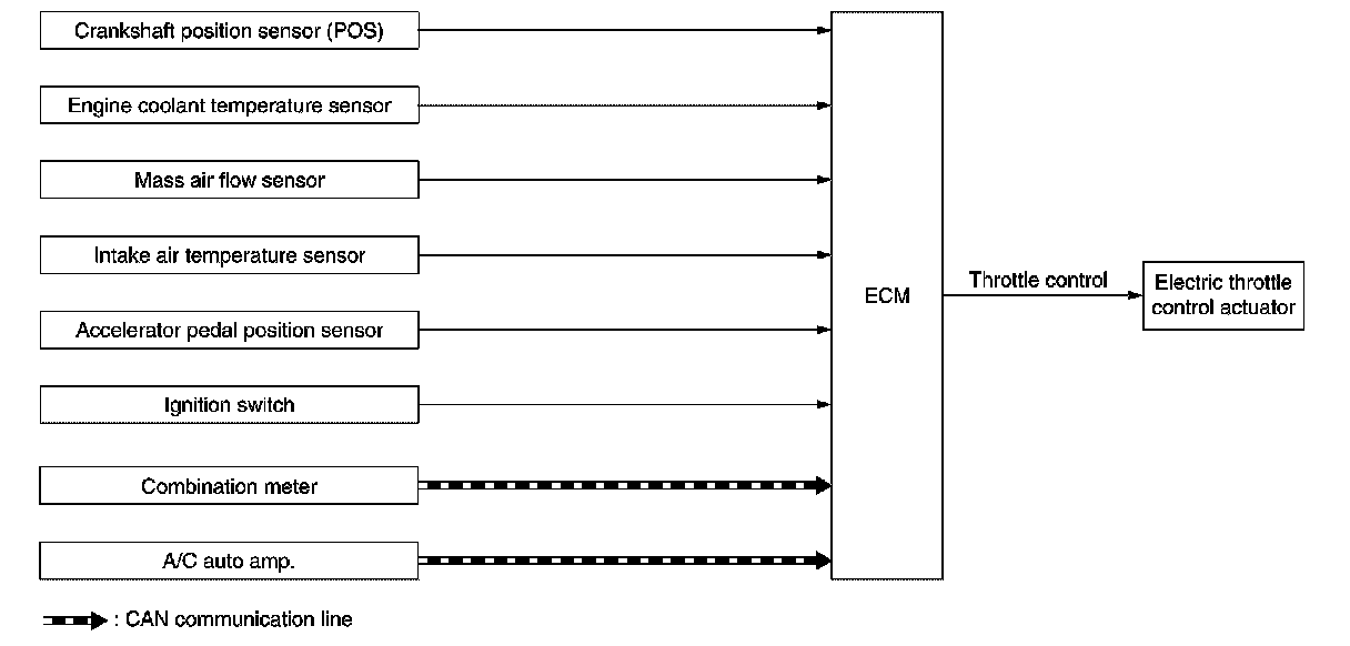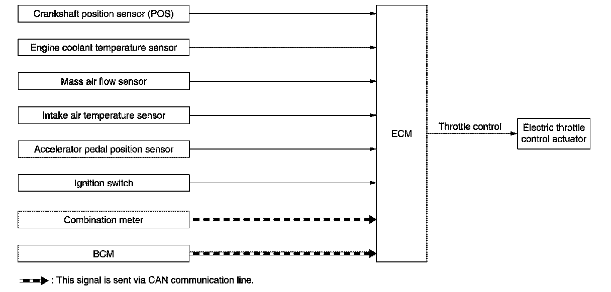 ECM calculates the value of signal transmitted from the accelerator pedal and activates the throttle valve by transmitting a control signal to the electric throttle control actuator. This allows the optimum throttle angle and improves drivability and fuel consumption. In addition, ECM learns the fully closed position every time when the ignition switch is turned OFF to improve the accuracy in throttle valve position.