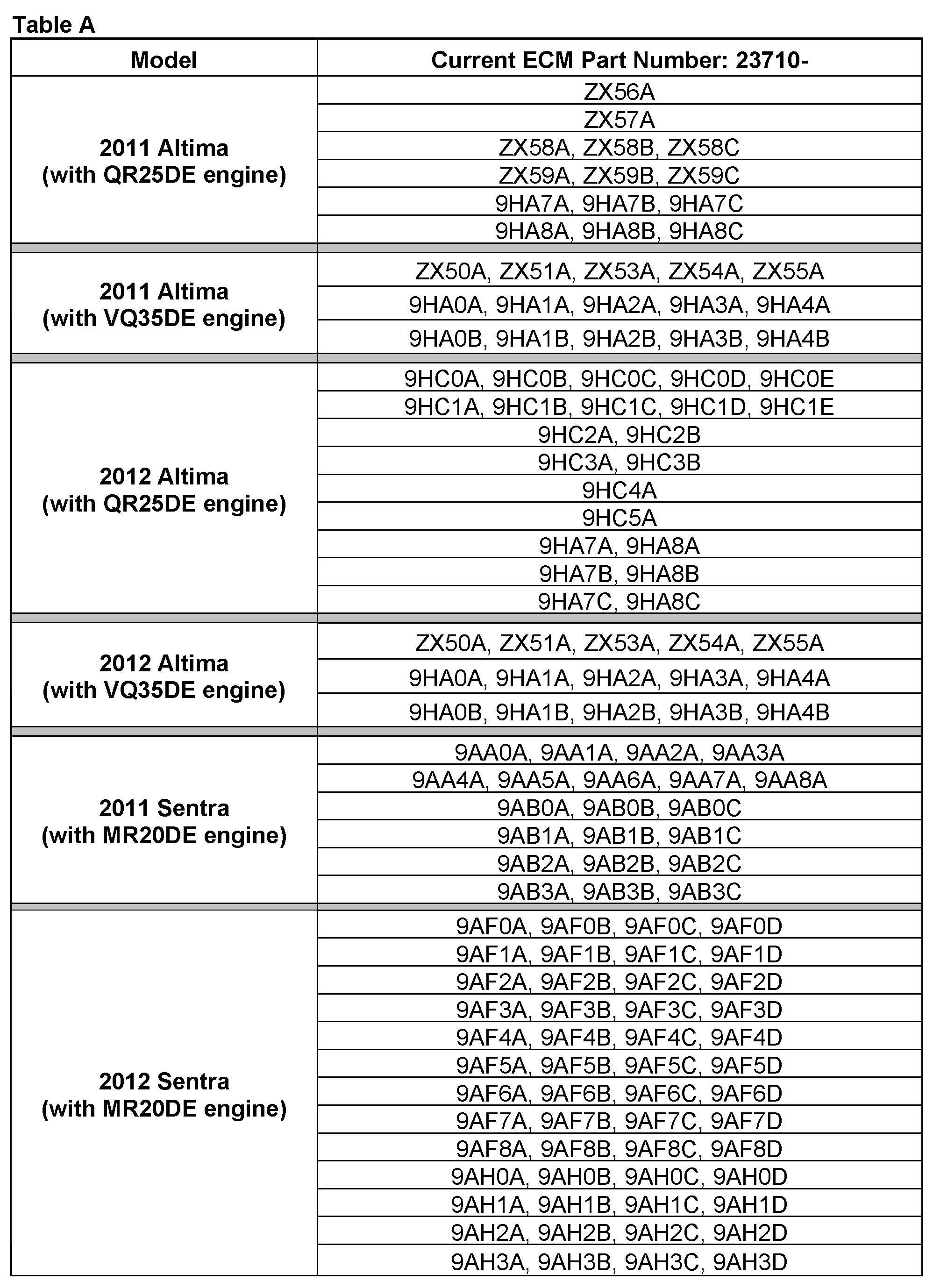 B. Compare the P/N you wrote down to the numbers in the Current ECM Part Number column in Table A.