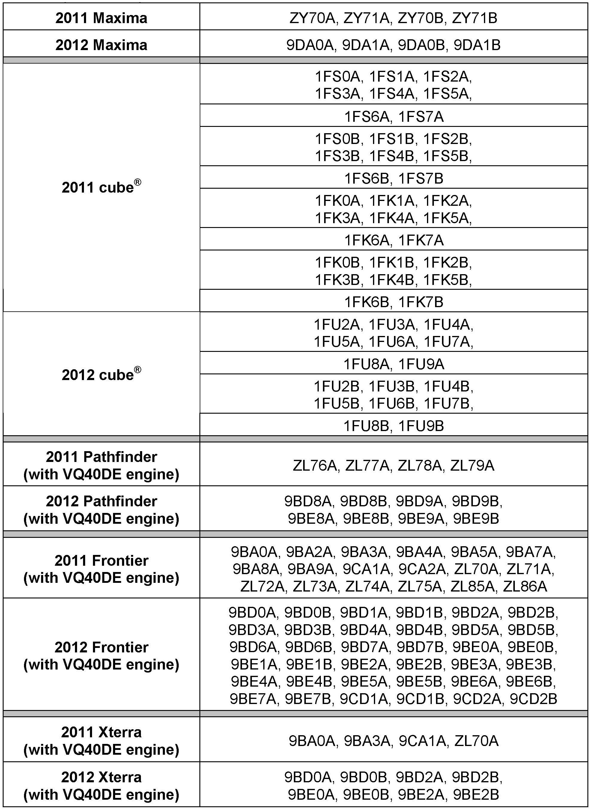 2011 - 2012 Pathfinder (R51) with VQ40DE engine only