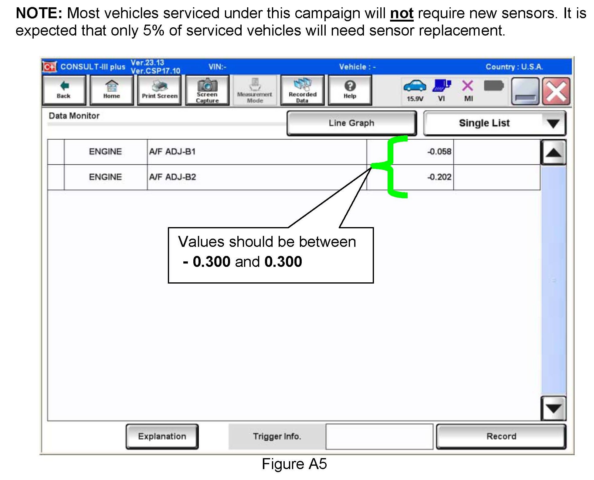Replace A/F sensor(s) only if value was out of specification.