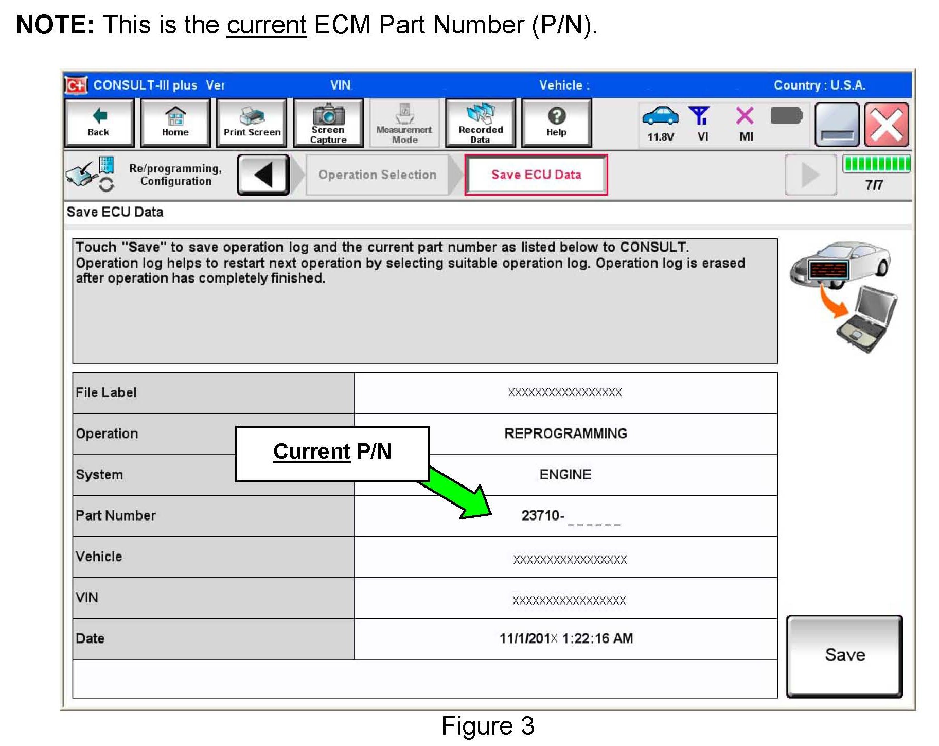 A. Find the ECM Part Number and write it on the repair order.