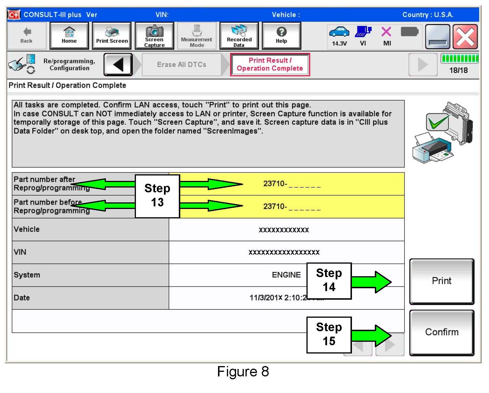 14. Print a copy of this screen (Figure 8) and attach it to the repair order for warranty documentation.