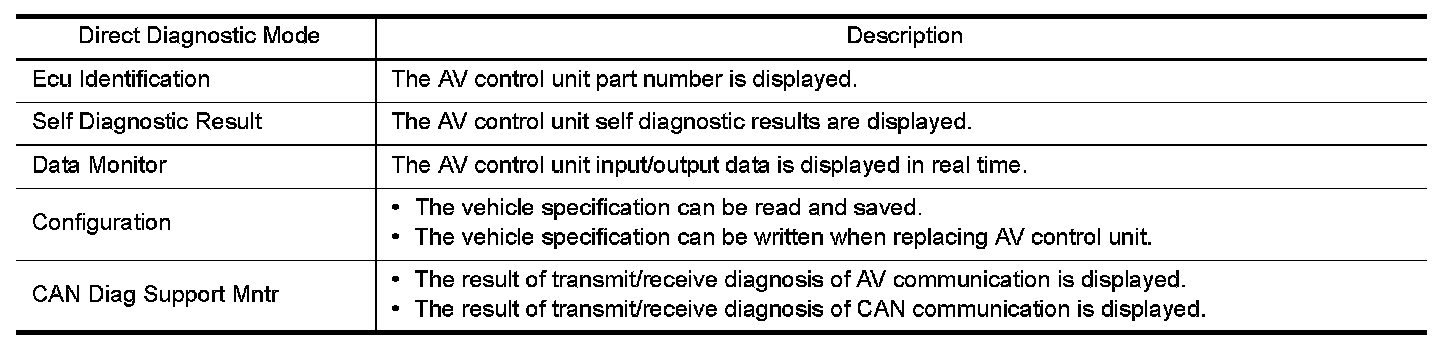 DIAGNOSIS SYSTEM (AV CONTROL UNIT)