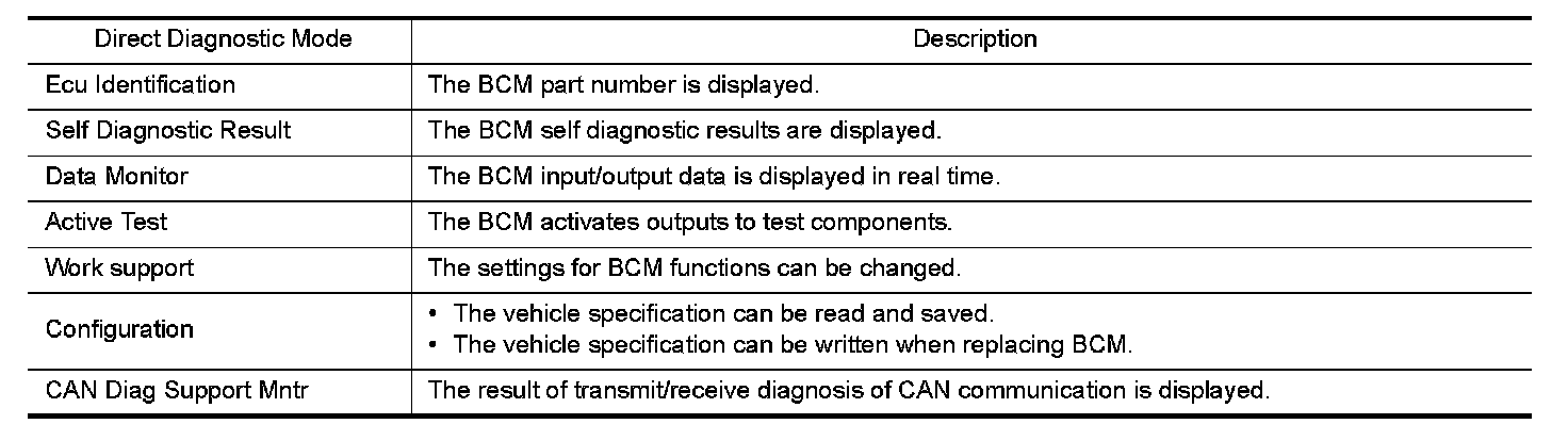 CONSULT performs the following functions via CAN communication with