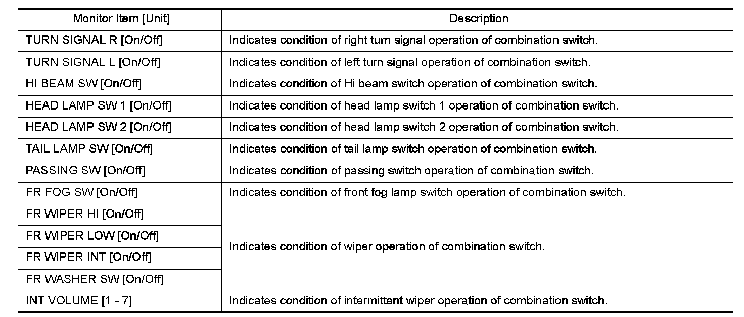 COMB SW : CONSULT Function (BCM - COMB SW)