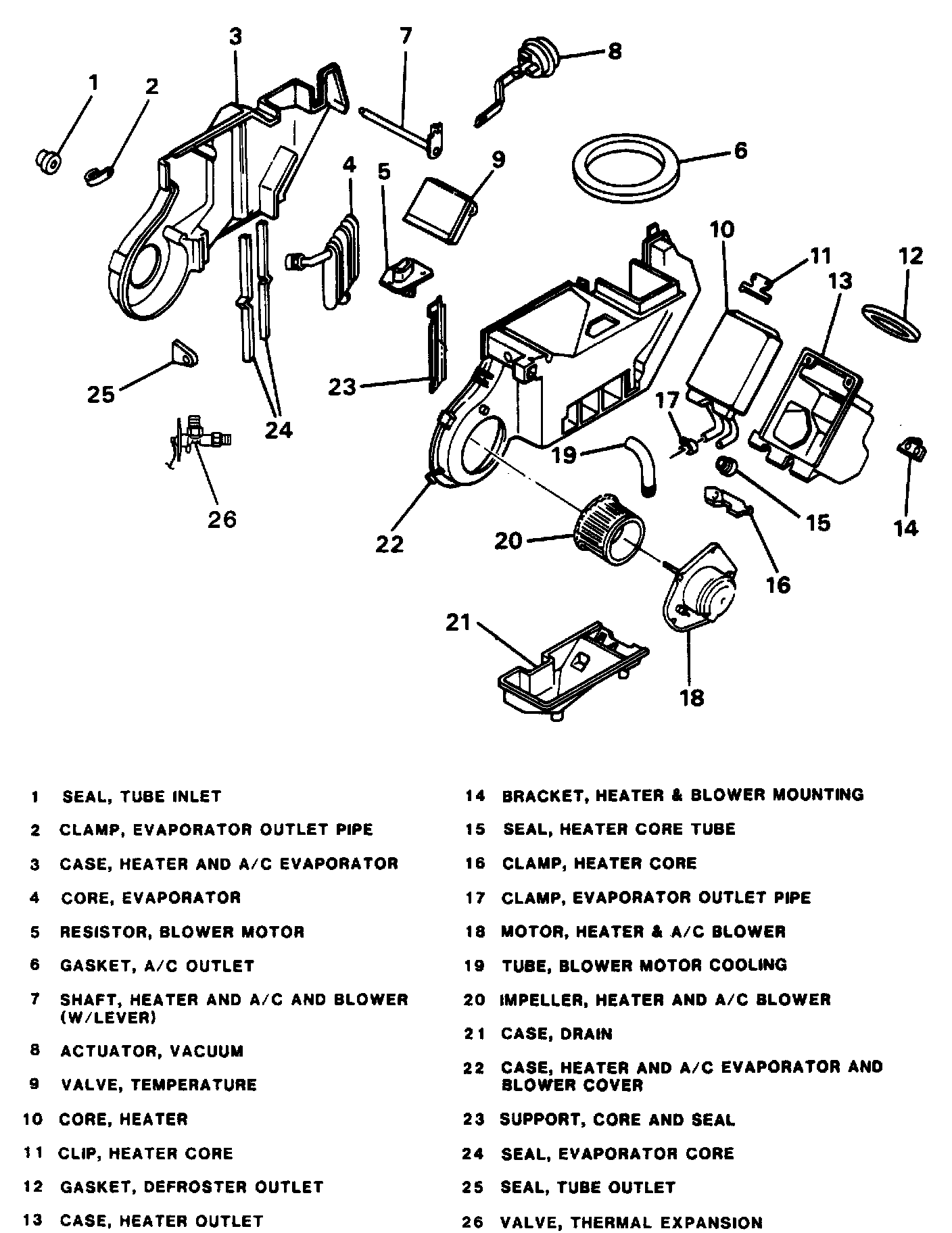 12. Inlet/outlet fittings from thermal expansion valve and valve from case.