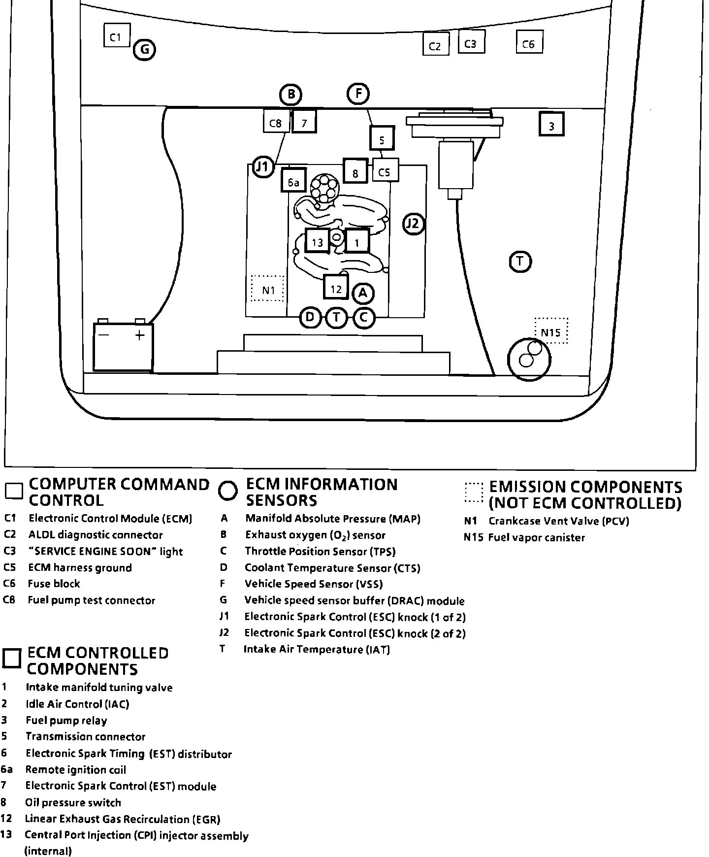 Component Location "S/T/Bravada" 92 4.3W: