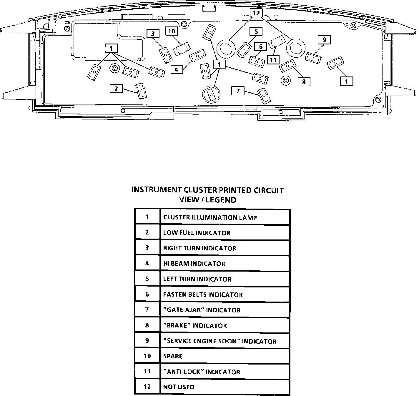Instrument Cluster Printed Circuit View/Legend