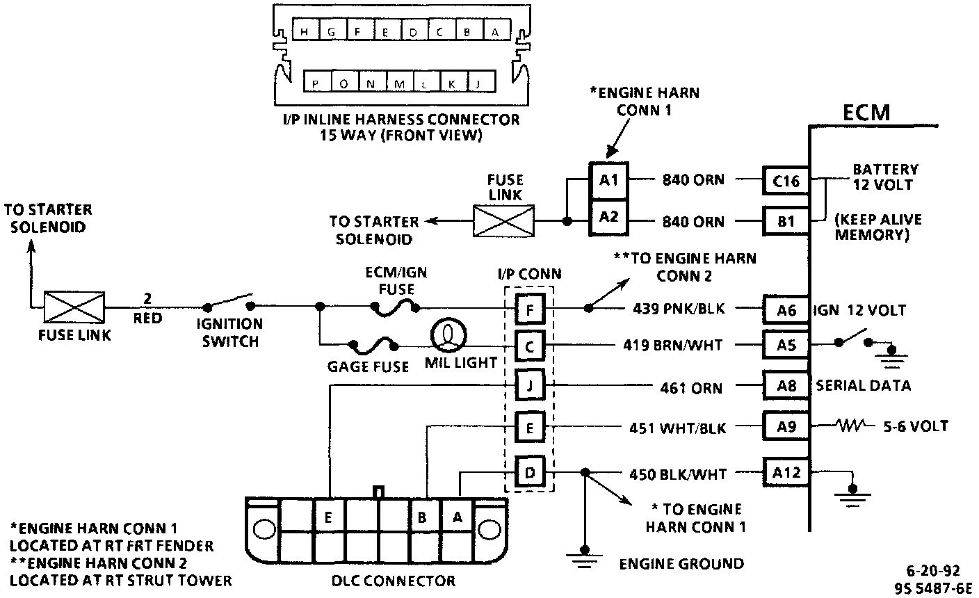 "Service Engine Soon" Lamp Wiring Circuit: