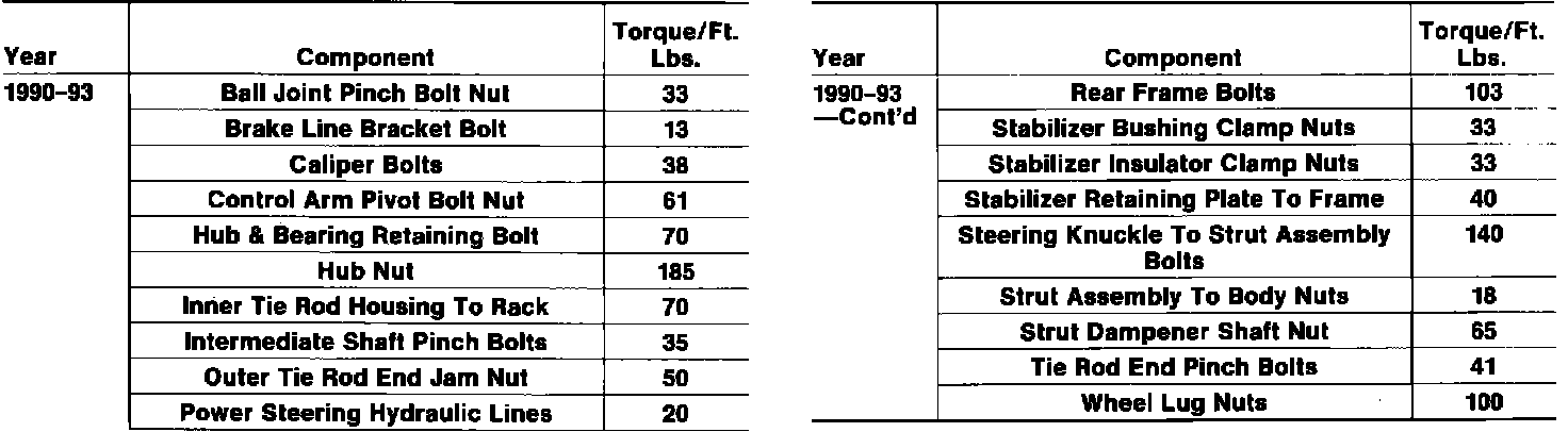 Tightening Specifications: