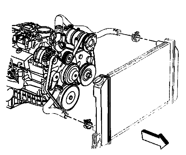 1. Remove the coolant from the radiator until the level is below the hoses being removed. Refer to Draining and Filling Cooling System.