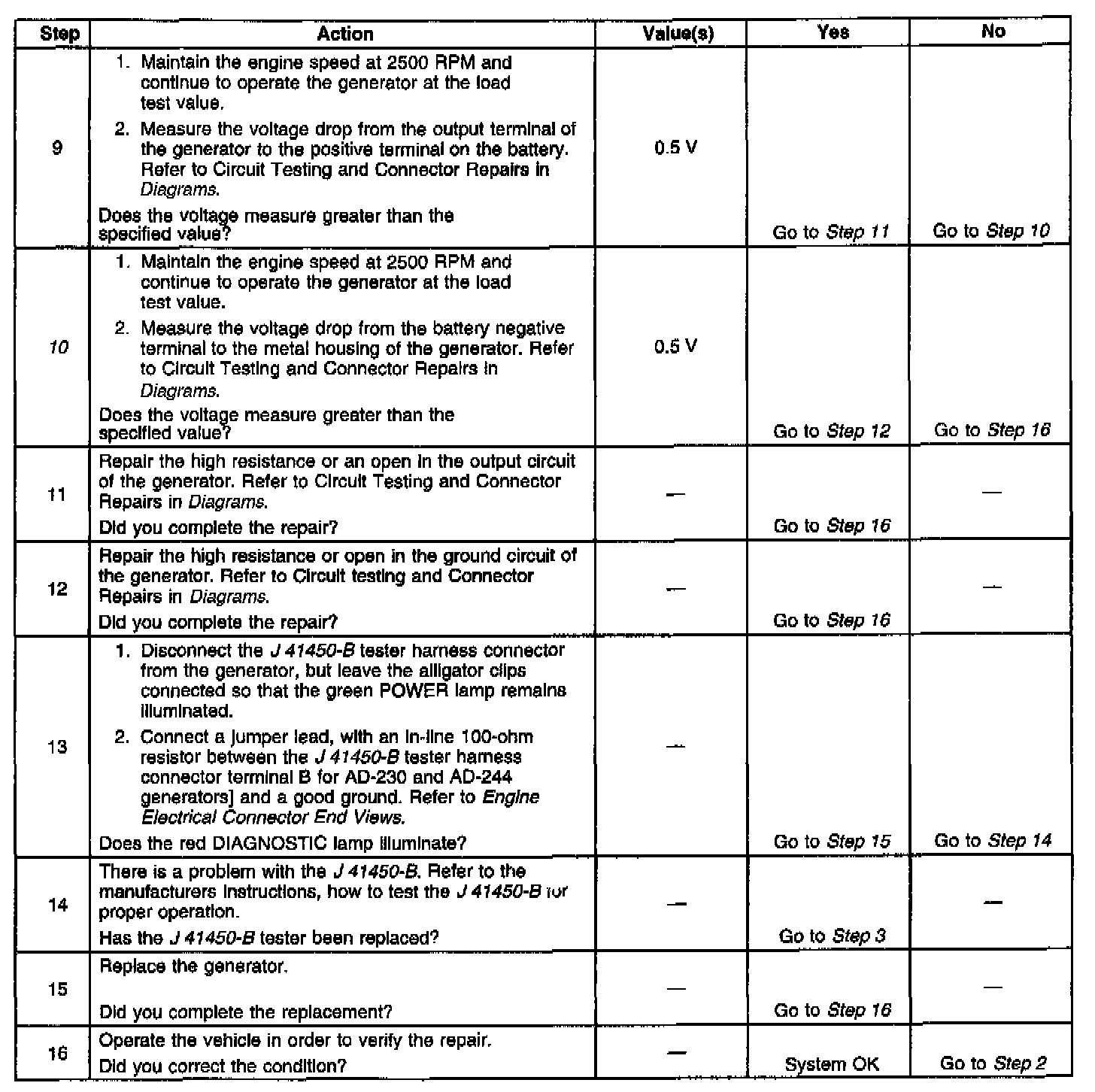 If the test has shown the generator to be OK, however the condition remains, test the PCM/VCM or its control circuit(s) to the generator.