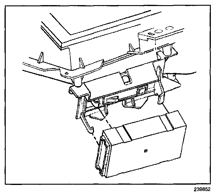 1. Install the body control module to the bracket at an angle under the wide hook retainer, with the label facing away from the bracket.