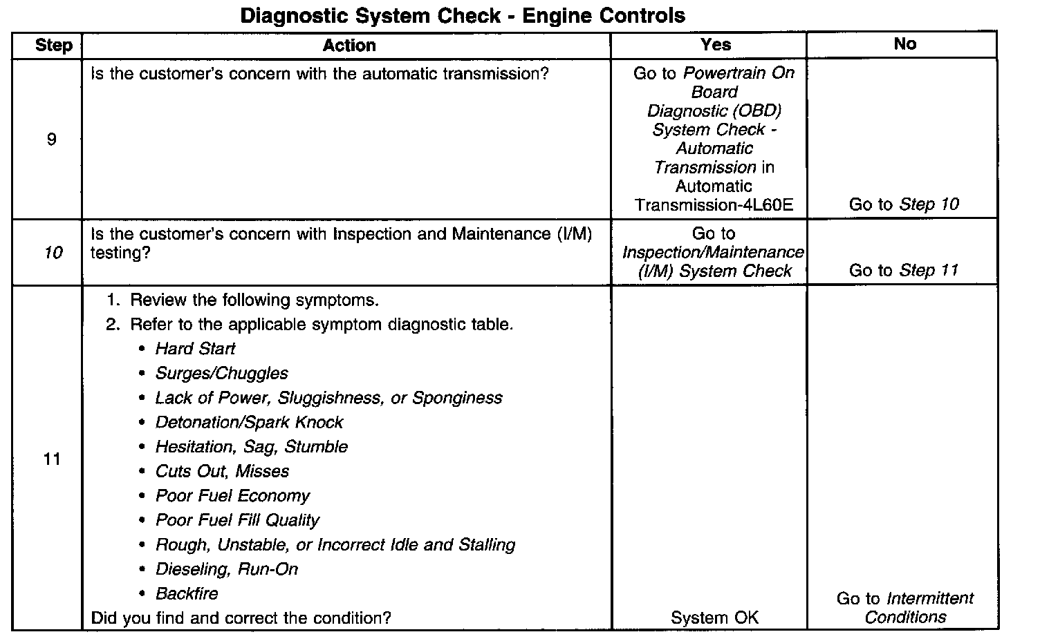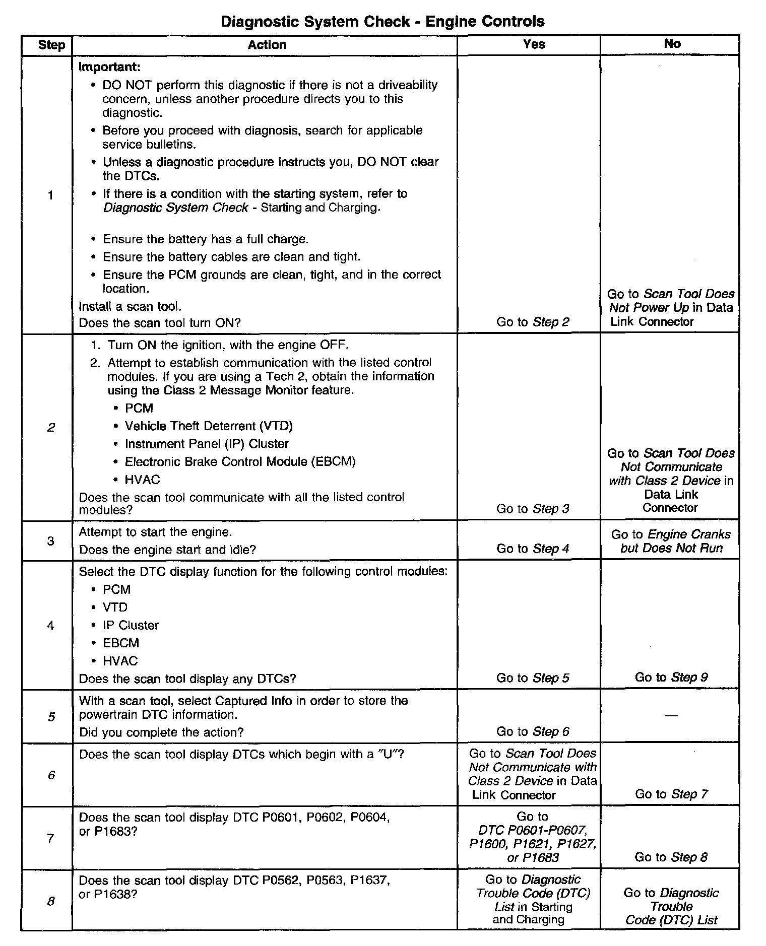 DESCRIPTIONThe Diagnostic System Check-Computers and Control Systems is an organized approach to identifying a condition that is created by a malfunction in the powertrain control system. The Diagnostic System Check must be the starting point for any driveability concern. The Diagnostic System Check directs the service technician to the next logical step in order to diagnose the concern. Understanding and correctly using the diagnostic table reduces diagnostic time, and prevents the replacement of good parts.