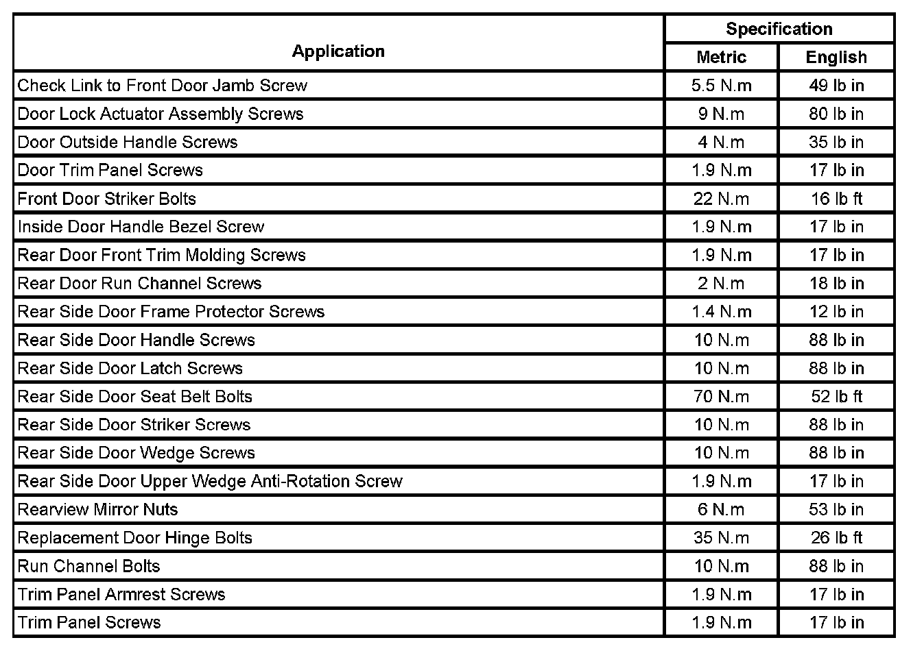 Fastener Tightening Specifications