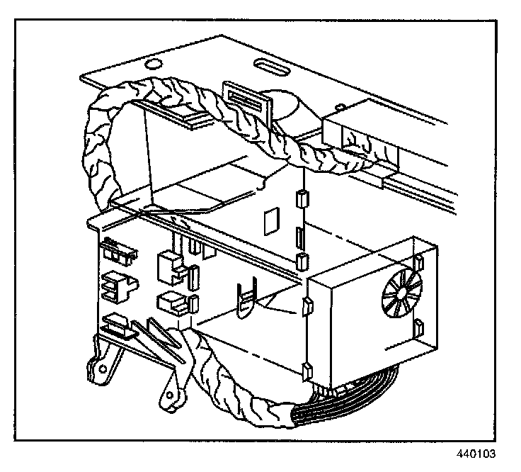 3. Push the release tab on the bottom of the bracket to release the body control module.