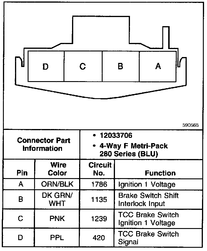 Shift Interlock/TCC Brake Switch Connector,Harness Side