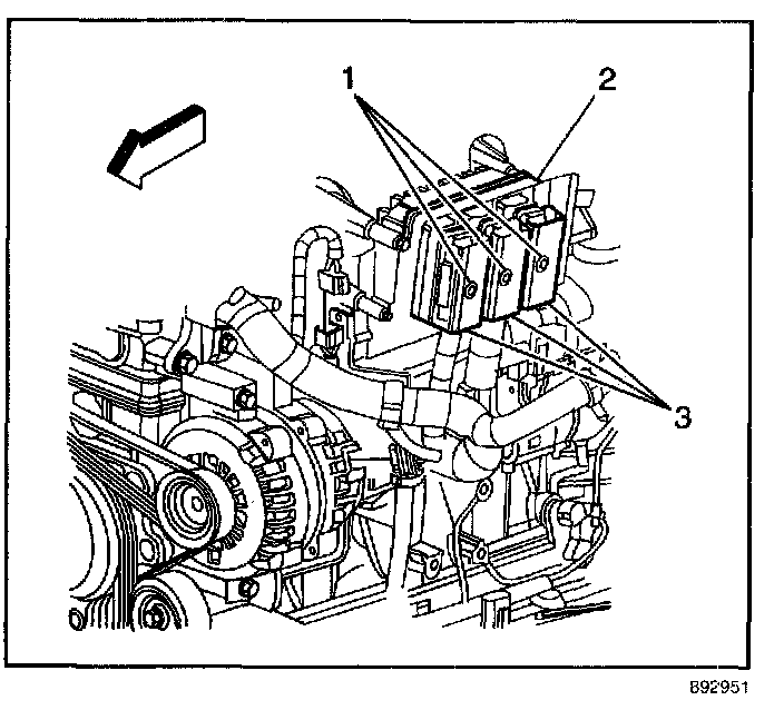4. Remove the PCM (2) from the intake manifold.
