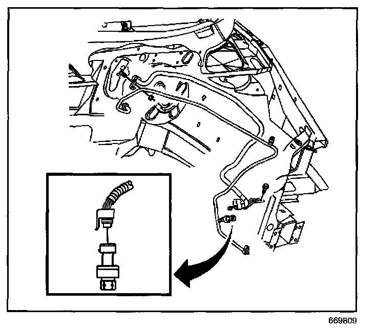 4. Disconnect the A/C refrigerant pressure sensor electrical connector.