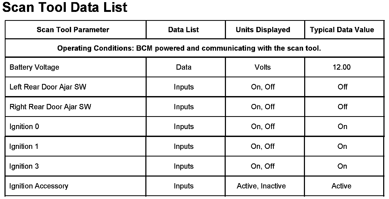 Scan Tool Data List:
