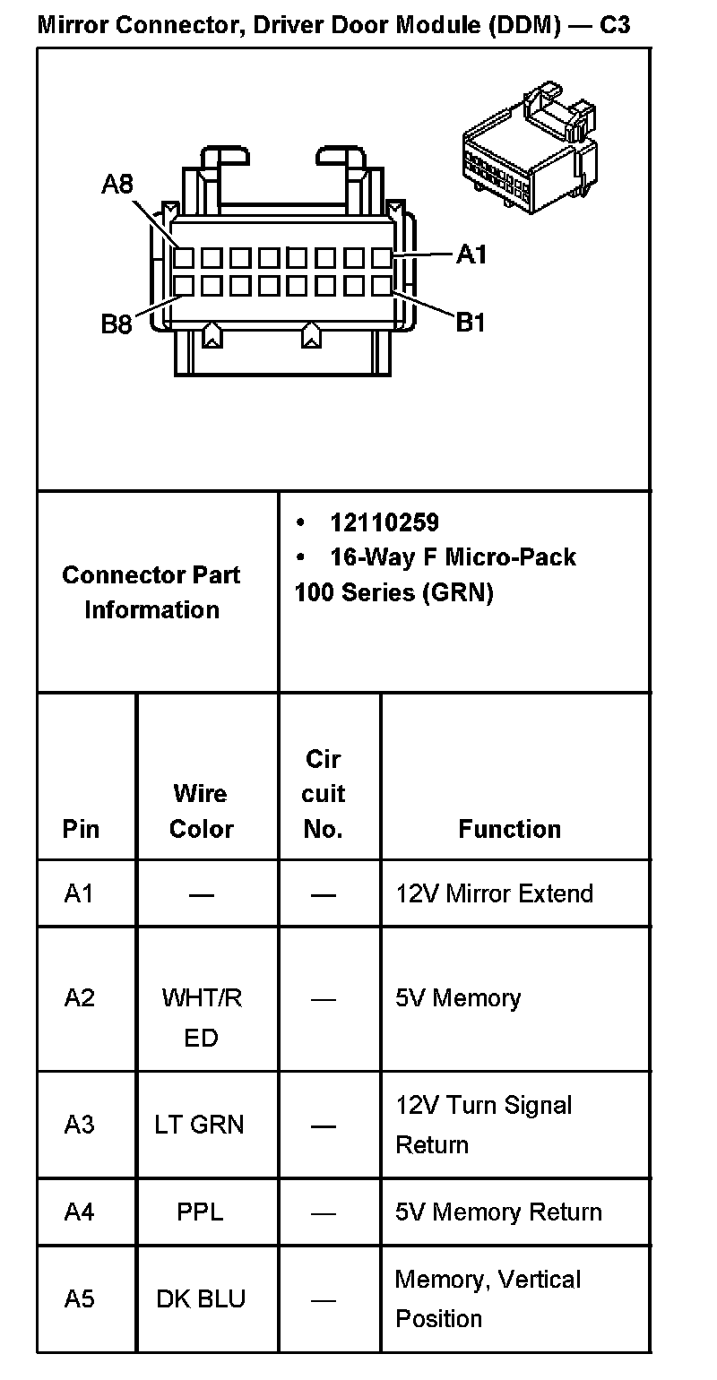 Mirror Connector, Driver Door Module (DDM) - C3 Part 2: