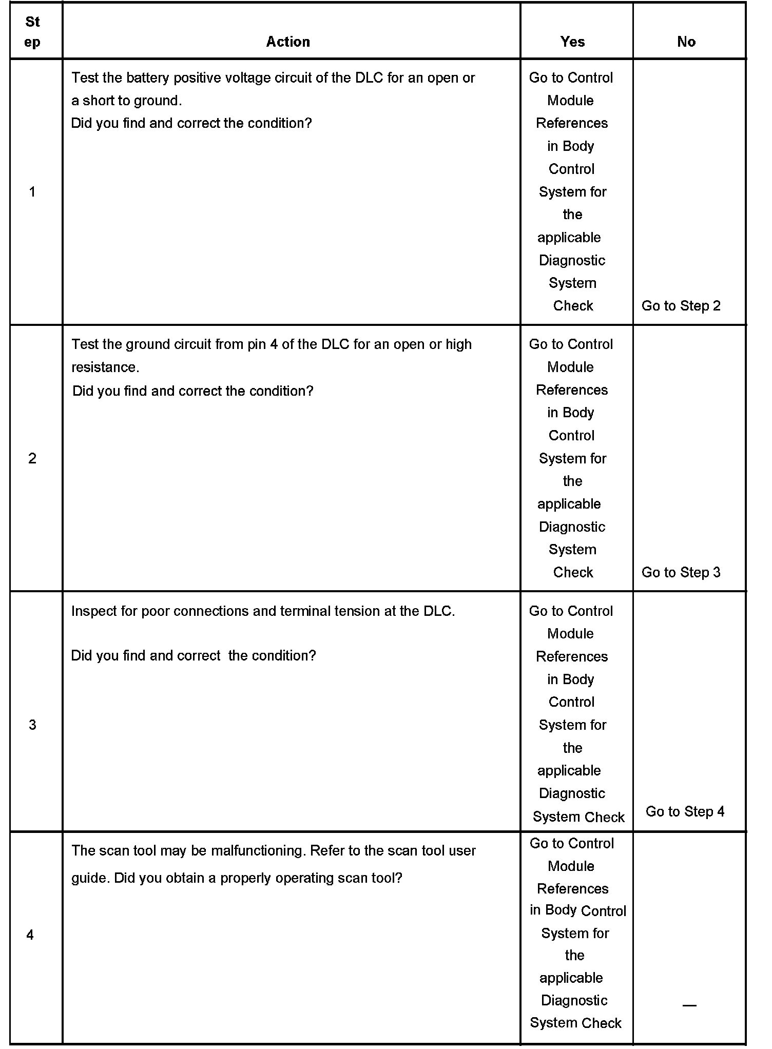 4. If the battery positive voltage and ground circuits of the DLC are functioning properly. The malfunction must be due to the scan tool.