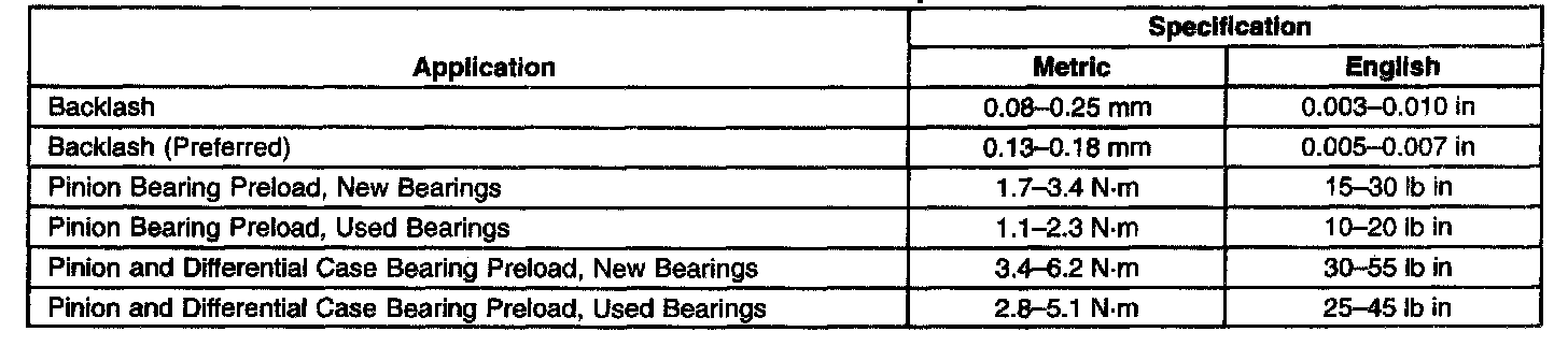 Axle Preload and Backlash Specifications
