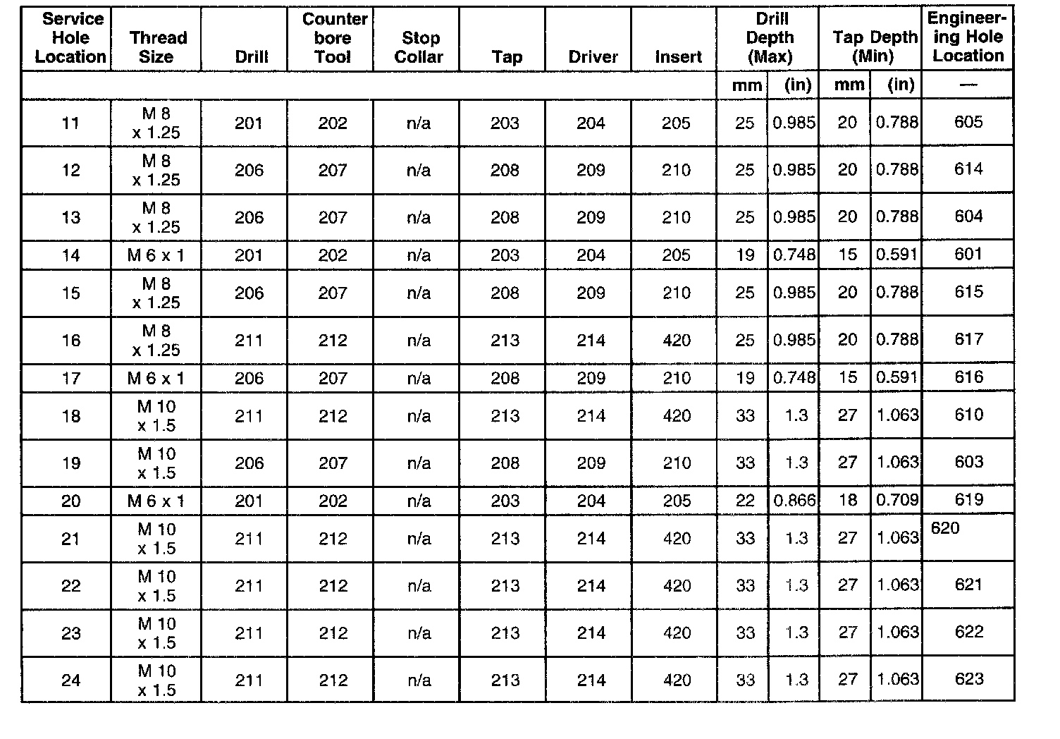 Thread Repair Specifications
