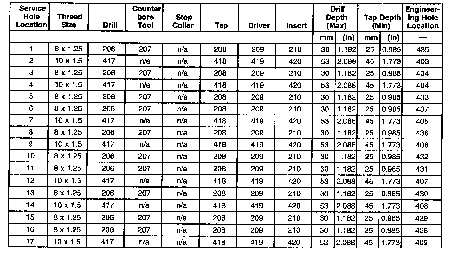Thread Repair Specifications