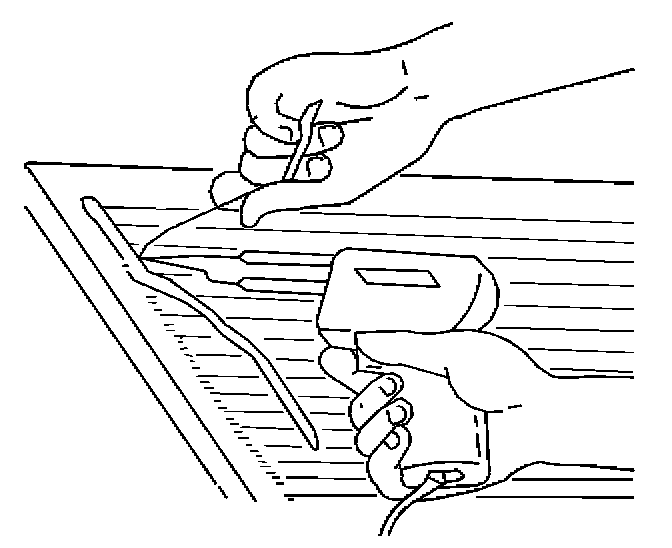 - Use pliers in order to hold the rear defogger bus bar lead wire antenna or the defogger terminal.