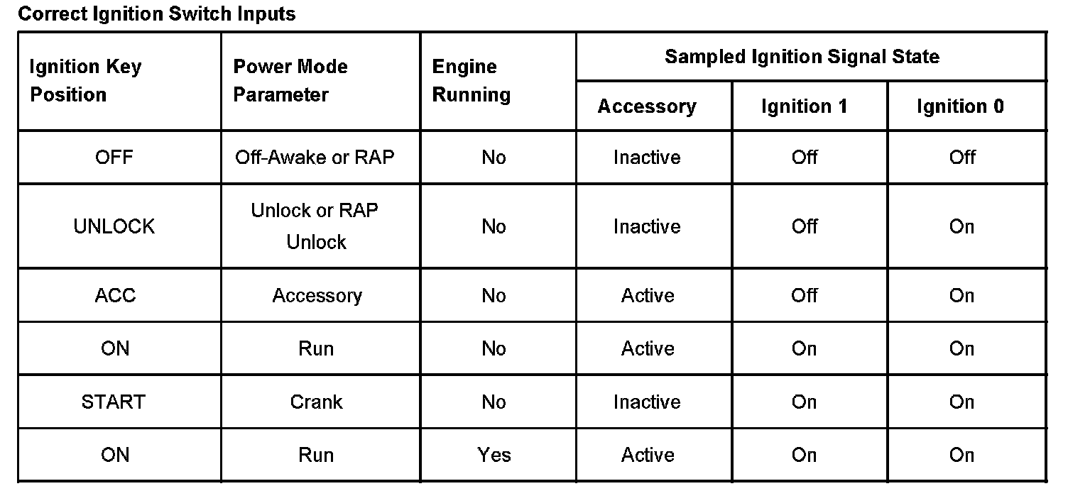 On vehicles that have several control modules connected by serial data circuits, one module is the power mode master (PMM). On this vehicle the PMM is the Body Control Module (BCM). The BCM uses 3 signals from the ignition switch. These are the Ignition 0, Ignition 1, and Accessory.