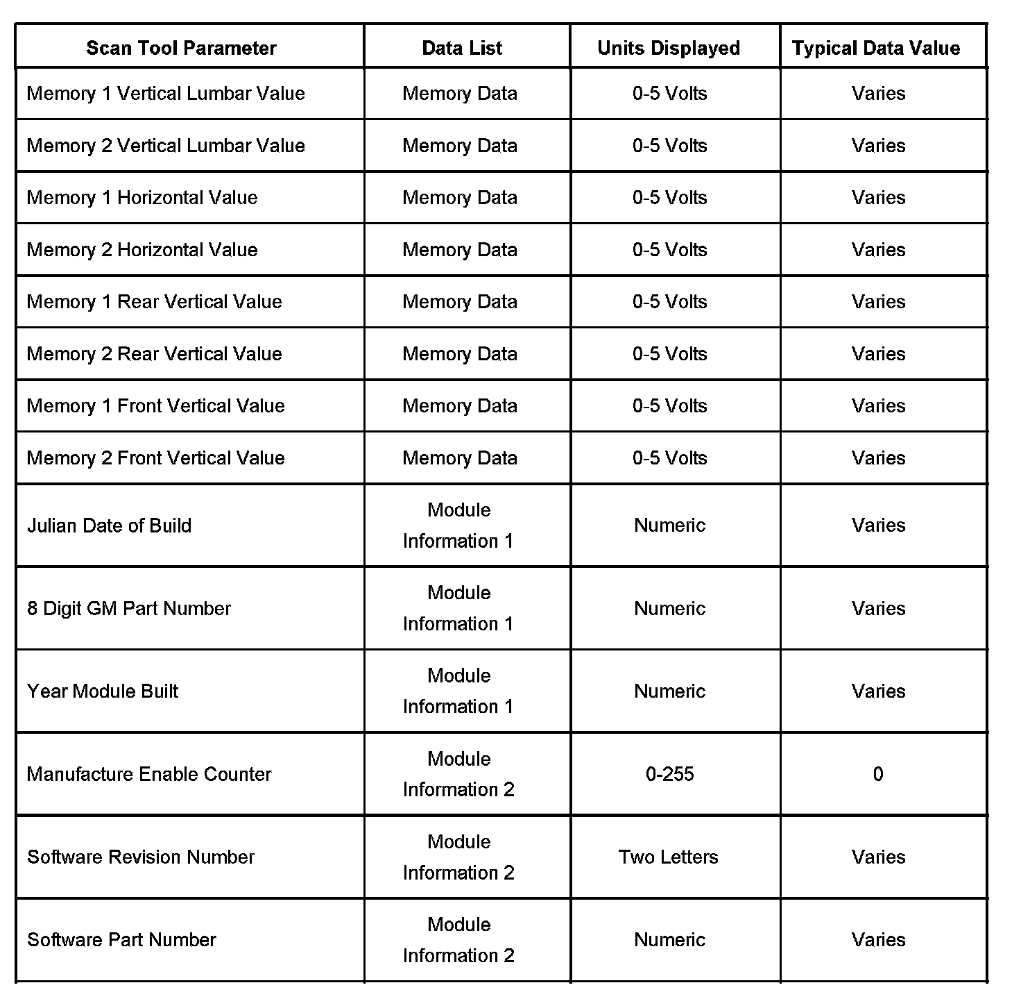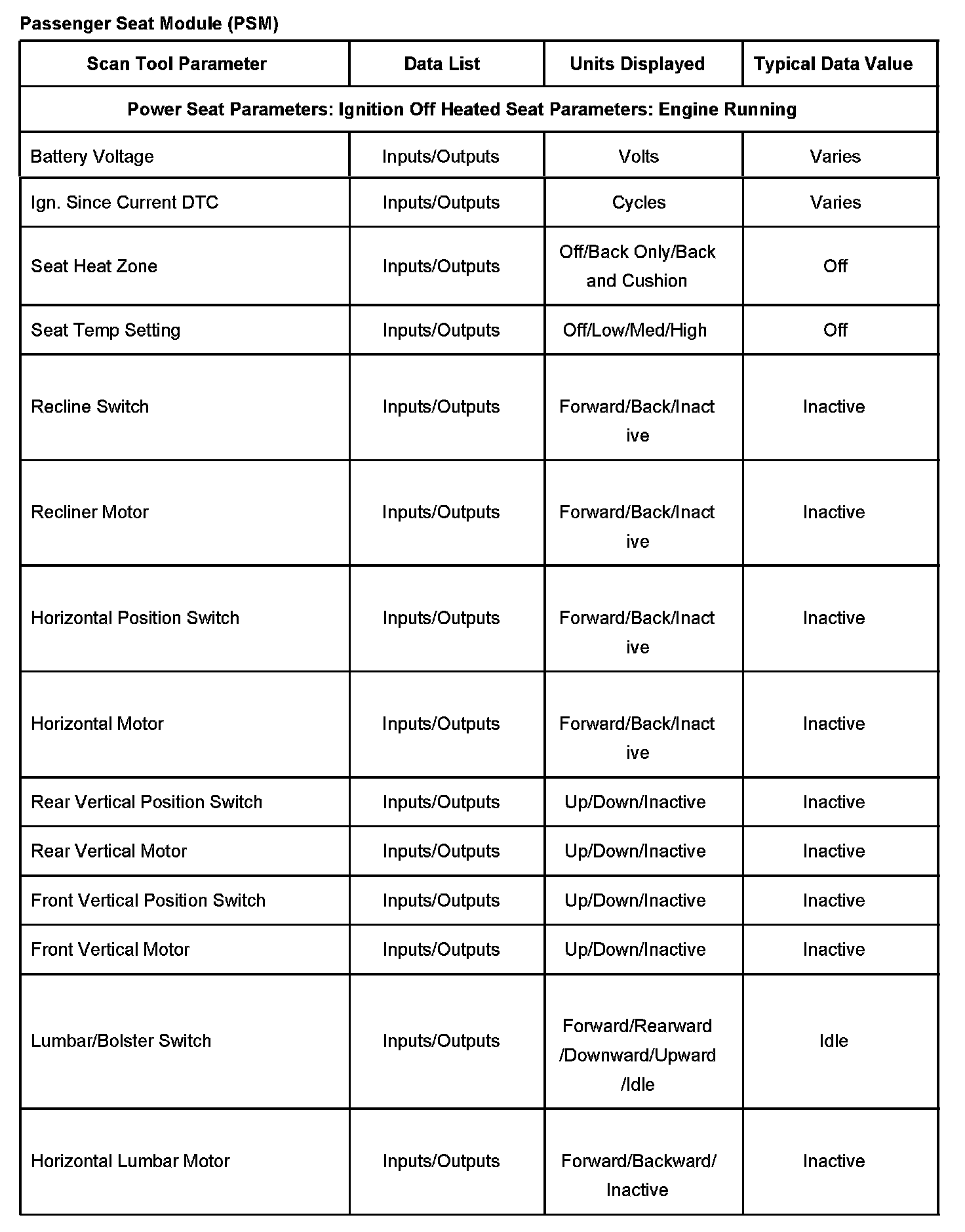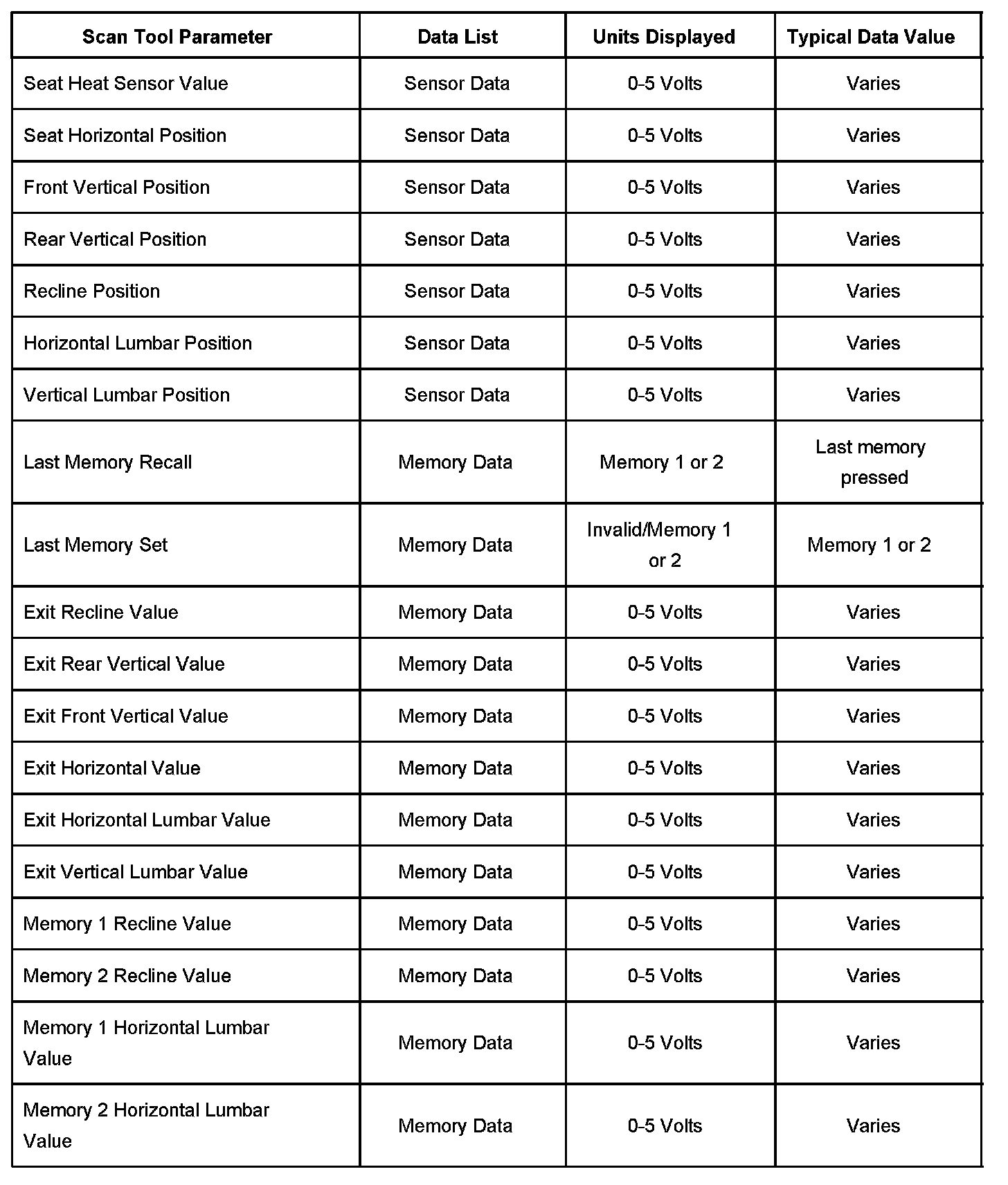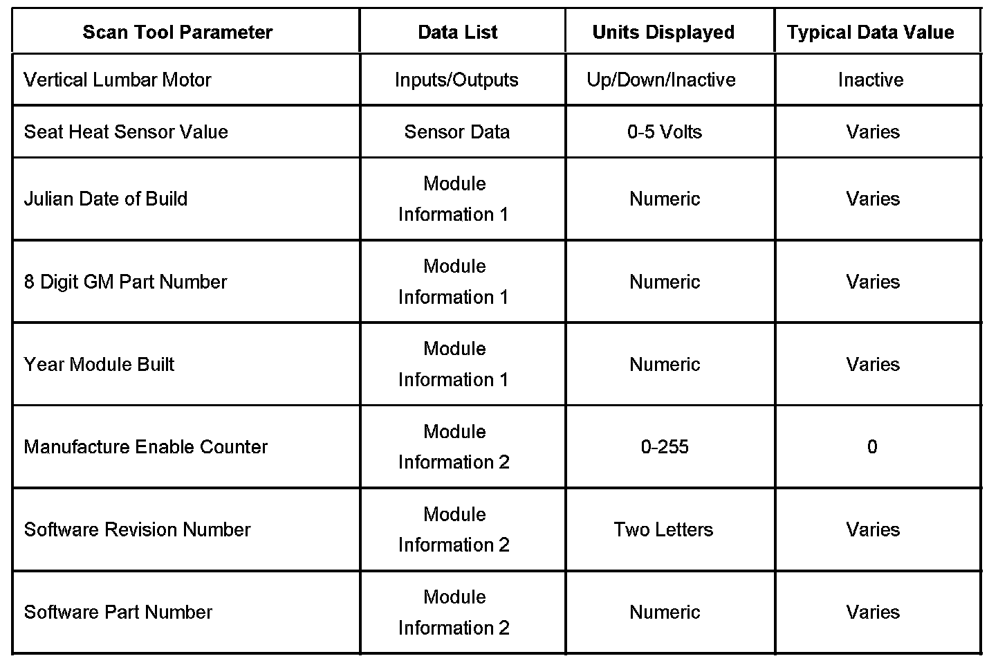 Scan Tool Data List