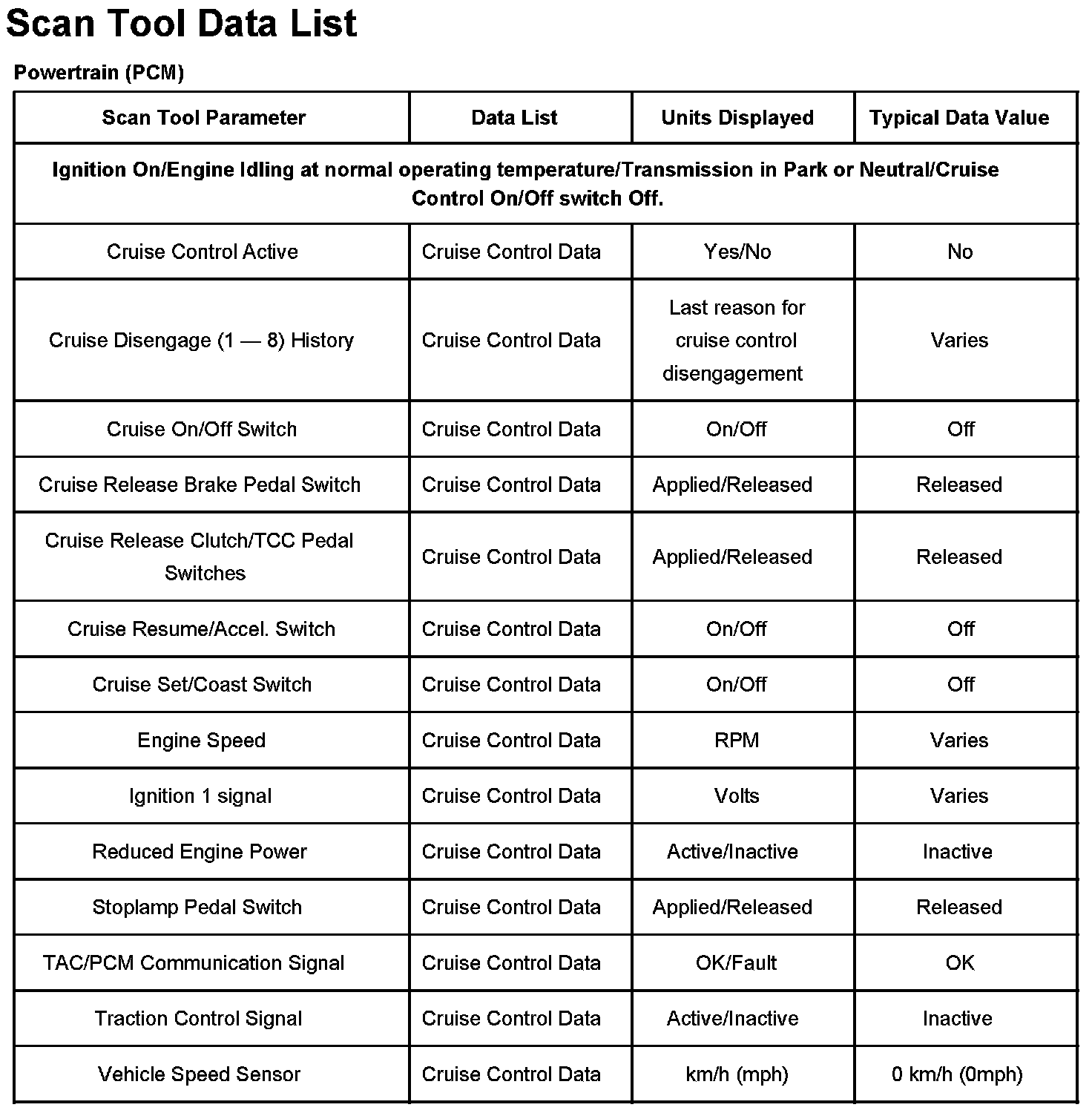 Scan Tool Data List: