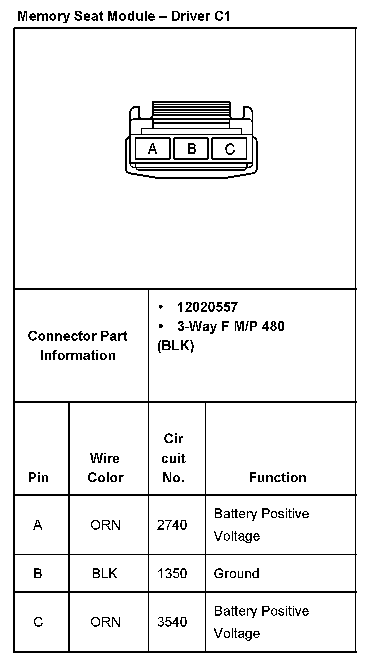 Memory Seat Module - Driver C3 Part 2: