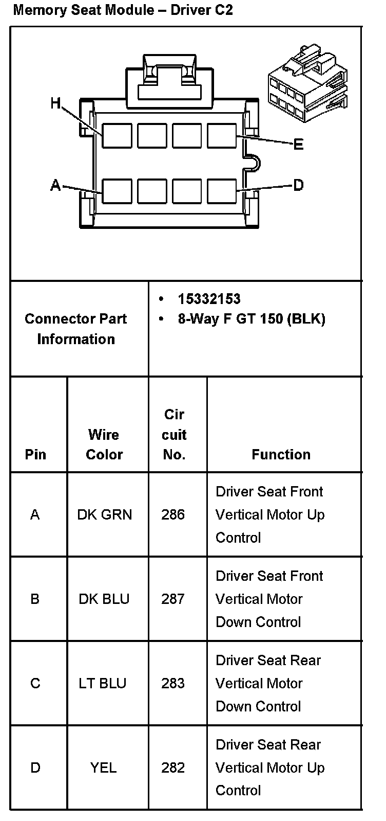 Memory Seat Module - Driver C2 Part 2: