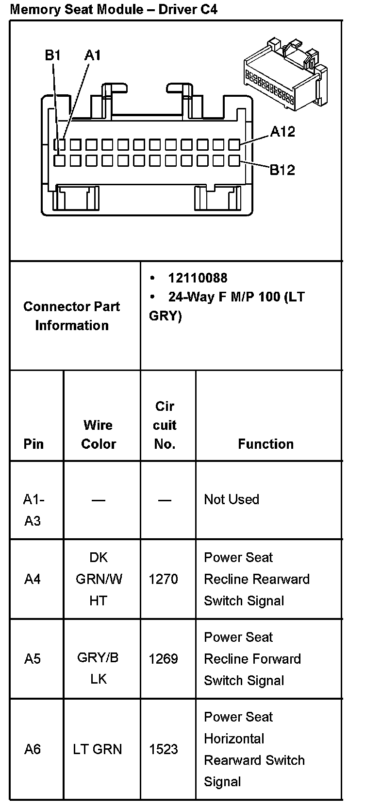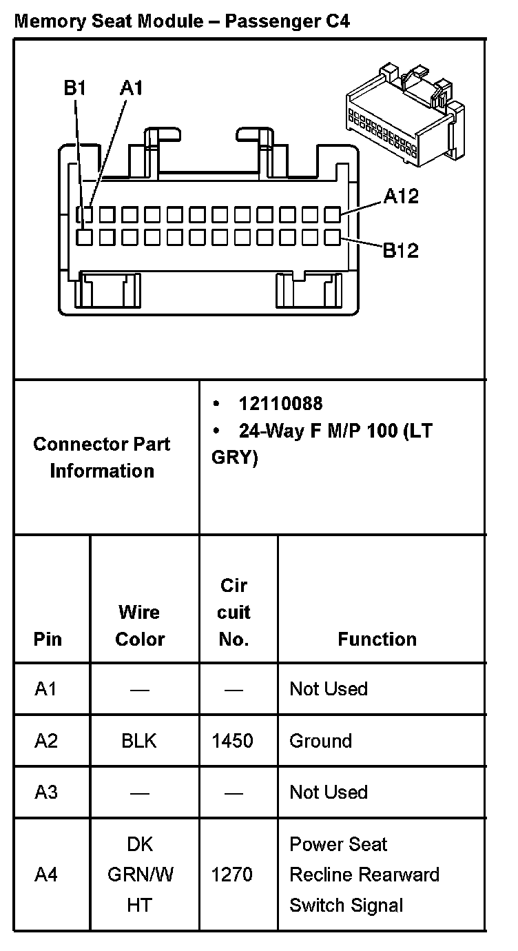 Memory Seat Module - Passenger C4 Part 1: