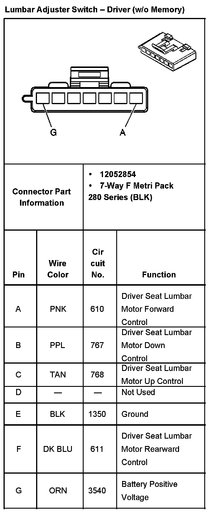 Lumbar Adjuster Switch - Driver (w/o Memory):