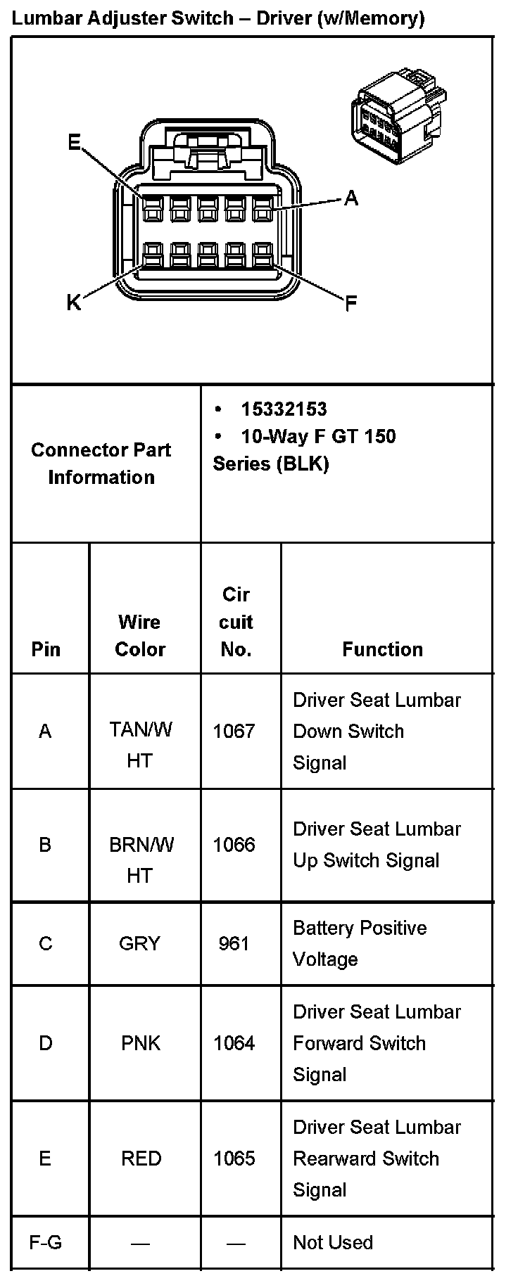 Lumbar Adjuster Switch - Driver (w/ Memory):