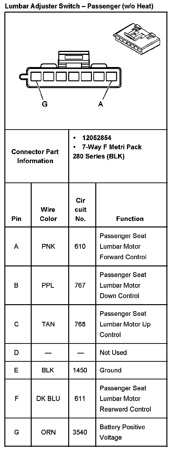 Lumbar Adjuster Switch - Passenger (w/o Heat):