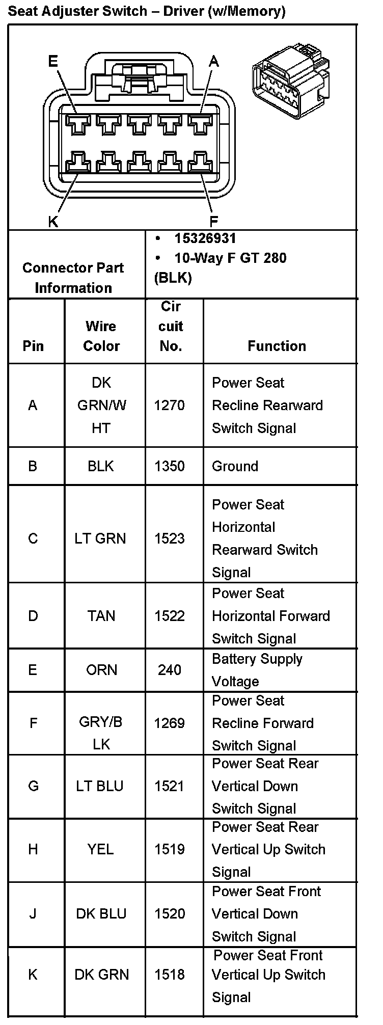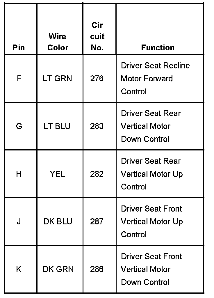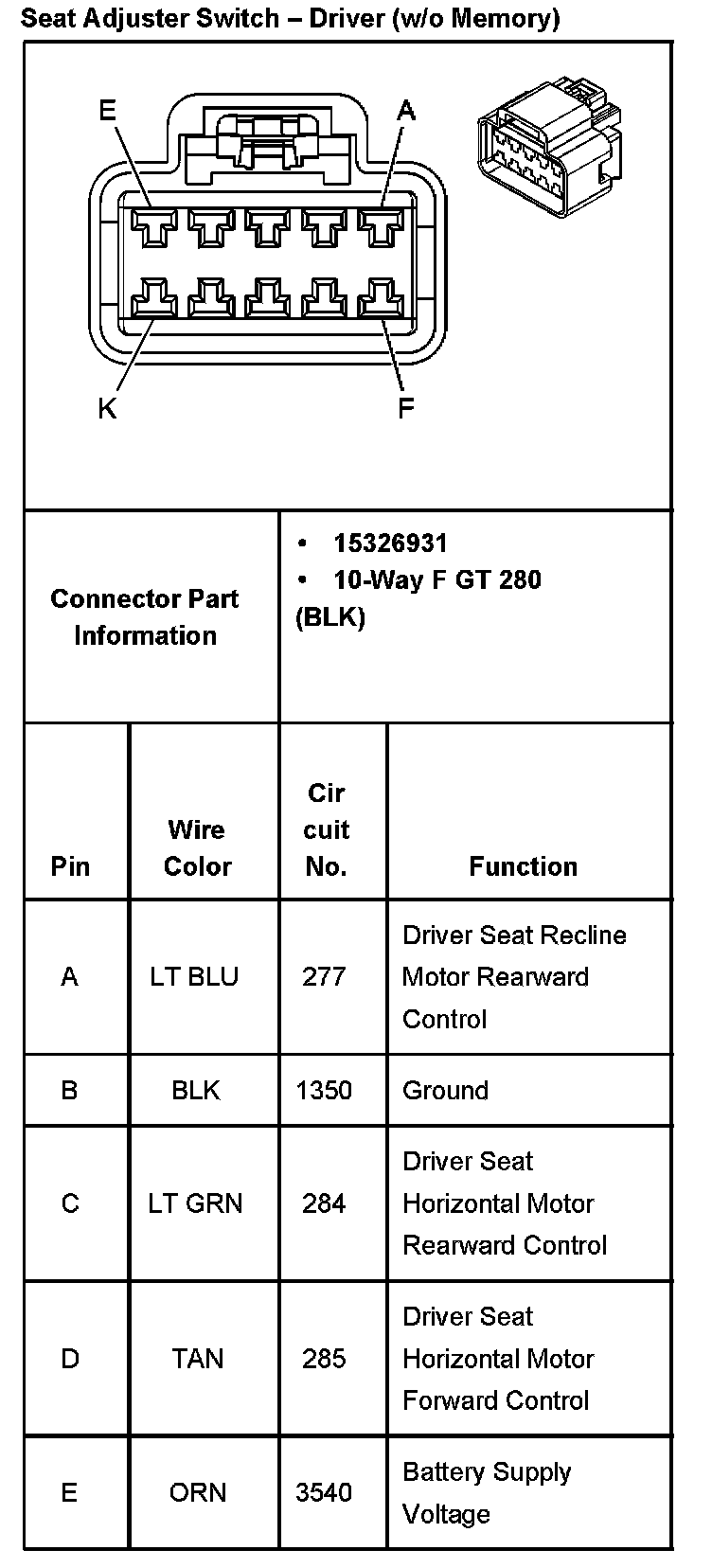 Seat Adjuster Switch Driver (w/o Memory) Part 2: