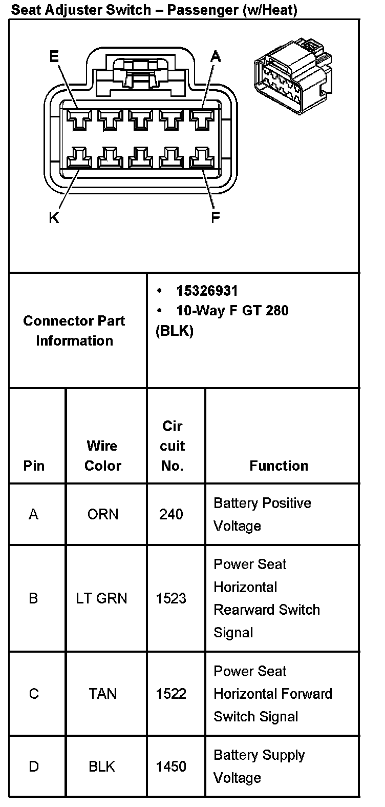 Seat Adjuster Switch - Passenger (w/Heat) Part 2: