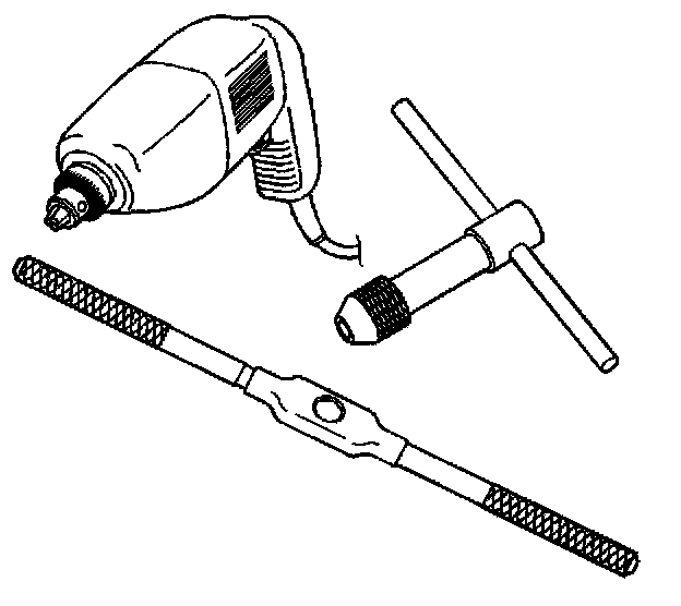 The tool kit J 42385-400 is designed for use with either a suitable tap wrench or drill motor. Limited access and larger hole repair may process better using a tap wrench. An extension J 43965 may also be necessary to drive the thread repair tooling dependent on access to the hole being repaired.