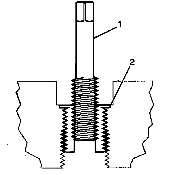 14. Inspect the insert (1) for proper installation (2) into the tapped hole.