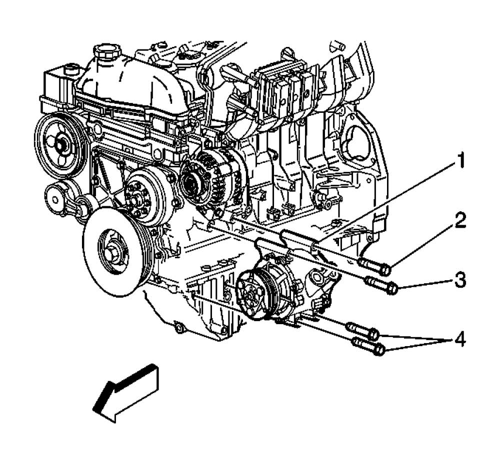 3. Install the compressor mounting bolts to the compressor (1).